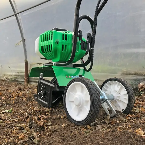 • Opremljen točkovima koji omogućavaju lako manevrisanje, ovaj kultivator je jednostavan za upravljanje i premeštanje, čineći rad u bašti ili plasteniku još prijatnijim.