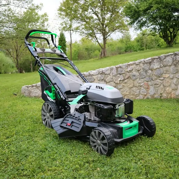 • Kosačica je opremljena snažnim 4-taktnim OHV motorom zapremine 196 cm³ koji pruža impresivnu snagu od 6,0 KS, omogućavajući vam lako savladavanje različitih terena i trava. Kapacitet korpe za travu je 70 litara, što vam omogućava dugotrajno košenje bez čestog pražnjenja.