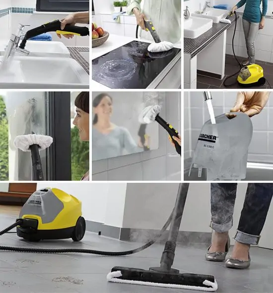 • Izrazito komforan uređaj čisti sasvim bez hemije i praktično može da se primeni svuda u domaćinstvu. Pomoću isporučene pegle na parni pritisak možete da uštedite 50 % uobičajenog vremena za peglanje.