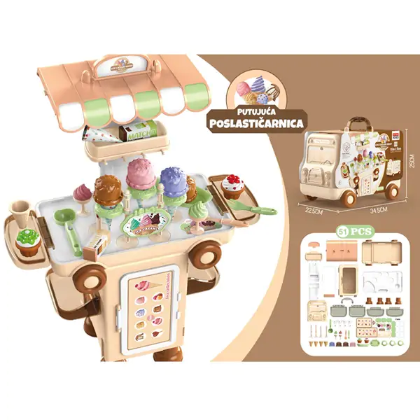 • Putujuća poslastičarnica - sjajan interaktivni set za igre mašte i uloga koji približava deci realan svet na njima prihvatljiv i zanimljiv način - kroz igru!
