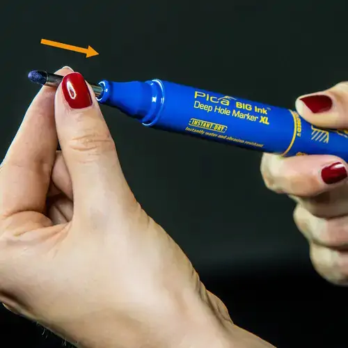 • Pica BIG Ink Marker XL plavi je inovativni marker koji kombinuje funkcionalnost permanentnog markera i markera za duboke rupe, pružajući korisnicima svestran alat za obeležavanje na različitim površinama. Njegov dizajn omogućava precizno i jasno obeležavanje, čak i na teško dostupnim mestima.