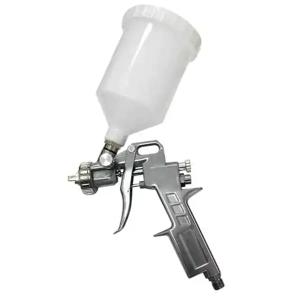 • Ovaj pištolj je opremljen gravitacionom posudom za boju, što omogućava da boja teče gravitaciono prema dizni. To rezultira ravnomernim prskanjem i boljom kontrolom protoka boje tokom aplikacije.