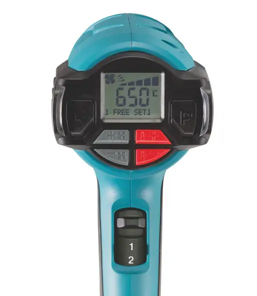 • Izdržljiv i snažan toplotni pištolj sa promenljivom kontrolom temperature i LCD displejom