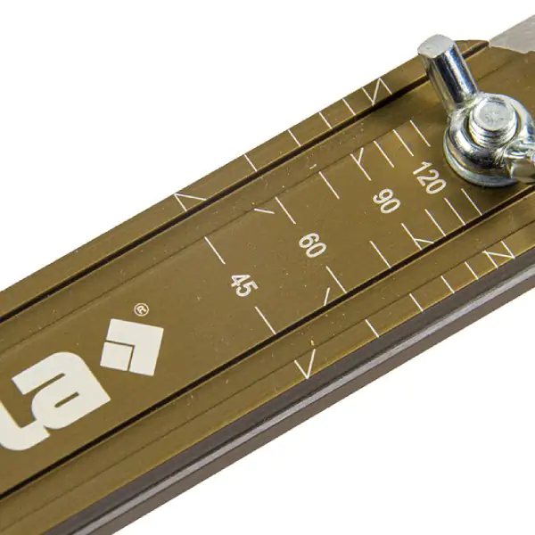 • Podesivi ugaonik SOLA VSTG 200 je precizan i izdržljiv merni alat napravljen od nerđajućeg opružnog čelika sa aluminijumskom ručkom, namenjen za brzo podešavanje, prenos i označavanje često korišćenih uglova (45°, 60°, 90°, 120°). Sa dužinom od 200 mm, alat kombinuje robusnu konstrukciju i funkcionalnost – sečivo od poliranog nerđajućeg čelika obezbeđuje dugotrajnu tačnost i otpornost na habanje, dok široka anodizirana aluminijumska ručka u bronznoj boji pruža stabilan i udoban hvat. Jasno gravirana skala omogućava lako očitavanje i precizno podešavanje željenog ugla, čineći ga neophodnim pomagalom za bravare, stolare, keramičare i sve majstore koji zahtevaju pouzdanost i efikasnost u merenju i označavanju uglova.