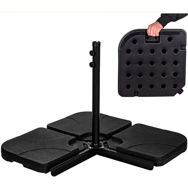 ovo postolje za suncobran je fantastično rešenje za svakoga ko traži stabilnost i sigurnost za svoj suncobran. Napravljen od polietilena visoke gustine (HDPE), ovaj stalak je izdržljiv i otporan na vremenske uslove. Posebno mi se dopada mogućnost punjenja baze vodom, peskom ili finim agregatom, što obezbeđuje dodatnu stabilnost, čak i tokom vetrovitih dana. Četiri nezavisna elementa olakšavaju pomeranje i skladištenje, dok metalne zakačke dodatno osiguravaju delove, čineći postolje izuzetno pouzdanim. kada zavrsi sezona jednostavno ispraznim vodu iz postolja i sklopim suncobran. sada ne moram da busim beton u dvoristu kao kod komsije, a istovremeno mogu da mu pomeram mesto gde stoji Savršen izbor za stabilan i siguran suncobran!
