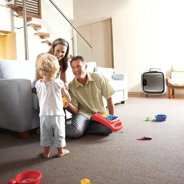 • Dodatnu zaštitu pruža antimikrobni HEPA filter, koji sprečava razvoj bakterija i plesni unutar filtera. Pored toga, aktivni karbon filter efikasno uklanja neprijatne mirise i štetne gasove poput VOC jedinjenja (isparljiva organska jedinjenja) koja se često nalaze u zatvorenim prostorima.