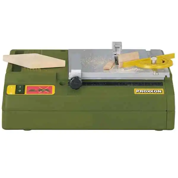 • Proxxon KS 230 je stoni cirkular idealan za precizno sečenje manjih komada različitih materijala. Opremljen listom testere „Super-Cut“ prečnika 58 mm, ovaj uređaj omogućava sečenje mekog drveta do 8 mm, plastike (uključujući PERTINAKS štampane ploče) do 3 mm, i obojenih metala do 1,5 mm. Poseban list testere od karbida omogućava rezanje čak i PC kartica ojačanih stakloplastikom.