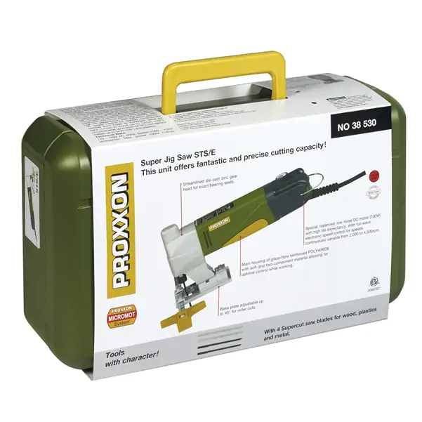 • Proxxon ubodna testera STS/E predstavlja vrhunski izbor za precizno i efikasno rezanje različitih materijala, od drveta do metala.