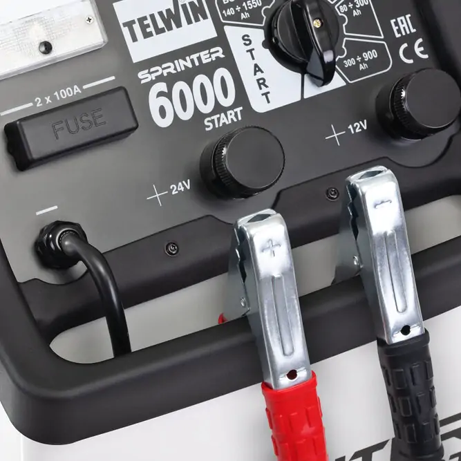 • Telwin SPRINTER 6000 START je višenamenski punjač-starter dizajniran za punjenje i pokretanje vozila sa baterijama tipa WET i START-STOP, podržavajući napone od 12V i 24V. Sa maksimalnom startnom strujom od 570 A, ovaj uređaj je idealan za pokretanje svih vrsta vozila, uključujući automobile, kombije i laka teretna vozila.