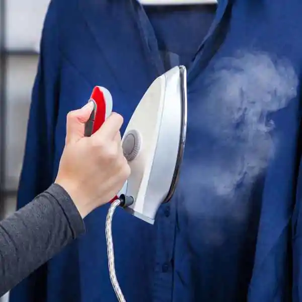 • Pegla takođe podržava vertikalno peglanje, što je savršeno za brze popravke na zavesama ili okačenoj odeći, čineći je višenamenskim alatom za putovanja.