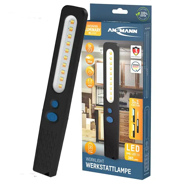 • ANSMANN WL390R je kompaktna i pouzdana punjiva radna lampa dizajnirana za profesionalce koji rade u uslovima gde je potrebno jasno i prilagodljivo osvetljenje. Opremljena savremenom COB LED tehnologijom, WL390R pruža snažan i ravnomeran snop svetlosti, uz mogućnost biranja toplog ili hladnog osvetljenja, u zavisnosti od okruženja i potrebe korisnika.