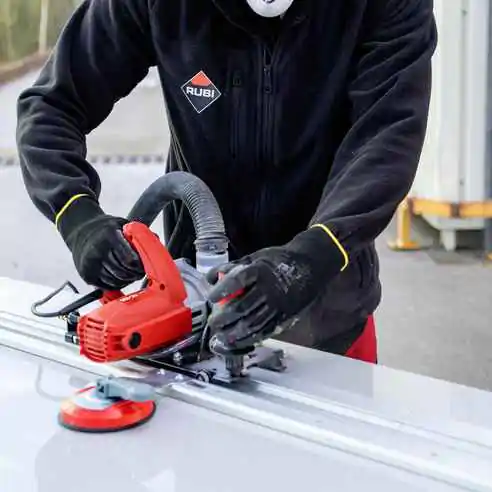 • Zahvaljujući ovom setu, u kombinaciji sa RUBI TC-125 G2 rezačem, sečenje će biti još bolje i brže, čak i kod pločica velikog formata. Dizajn vođica i vakuumskih čaša ne samo da poboljšava udobnost tokom rada, već omogućava i preciznije i glađe rezove.