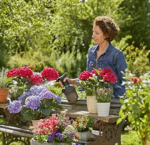 • Prilikom navodnjavanja imate mogućnost upotrebe punog mlaza ili fine maglice u spreju, jer se robusna i visokokvalitetna mlaznica od punog mesinga može lako prilagoditi tako da se i vi prilagodite potrebama svojih biljaka. Pored toga, uvek imate na umu nivo vode jer je rezervoar napravljen od prozirnog materijala.