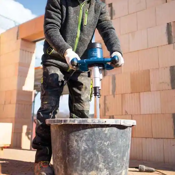 • Sa snažnim motorom od 1800 W i dvije suprotno rotirajuće šipke, pruža homogeno i ravnomerno mešanje, što je posebno korisno kako na gradilištu tako i za "uradi sam" projekte.