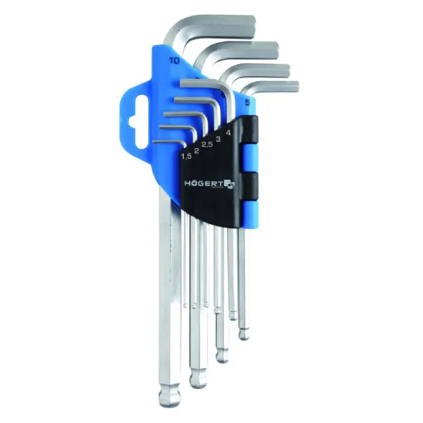 • Naziv proizvoda: Set od 9 dugih šesterokutnih ključeva sa kuglastim vrhom, CrV čelik HT1W804 Hogert