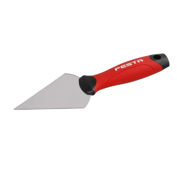 • FESTA-ina ugaona špahtla od nerđajućeg čelika je nezamenjiv alat koji donosi izuzetnu preciznost i efikasnost u procesu zaglađivanja uglova. Ova špahtla je dizajnirana sa posebnim oblikom sečiva lopatice koji omogućava podešavanje nagiba pri radu, osiguravajući savršeno izgladene pravougaone i nepravougaone uglove.
