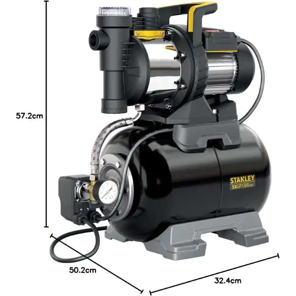 • Samousisna pumpa STANLEY® 1300W dizajnirana za efikasno pumpanje i distribuciju čiste vode, idealna za automatsko navodnjavanje, kućne aparate ili vodovodne sisteme.