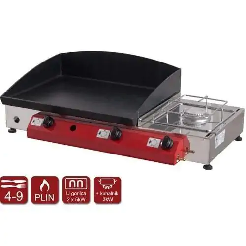 • Naziv proizvoda: Stoni plinski roštilj, inox 80 x 40 sa kuvalom, Fe 5mm ploča, dva gorionika Gurman 80k - Ambiente