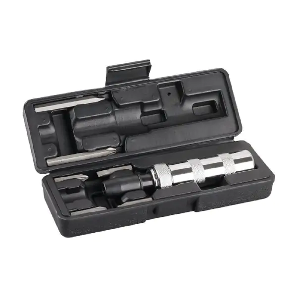 Udarni odvijač sa nastavcima u plastičnoj kutiji LEVIOROdvijač udarni 6-delni set 1/2" CrV Festa je idealan set alata za različite popravke i pos ...