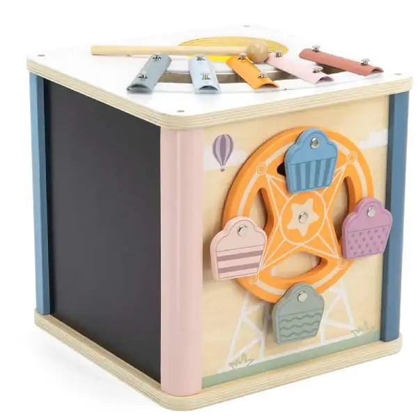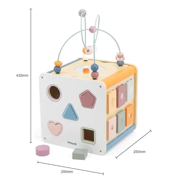 Viga Polar B aktiviti kocka 8u1Aktiviti kocka 8-u-1 nudi niz senzornih iskustava za mališane: ksilofon, sortiranje oblika, vrteći se panoramsk ...