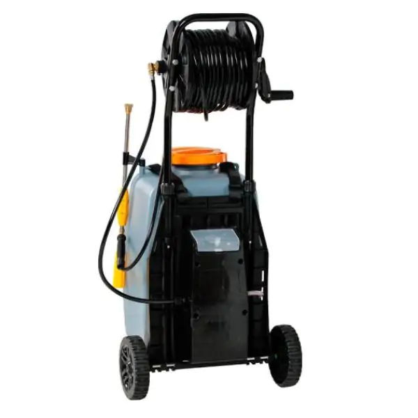 • Praktičnost na Točkovima: Dizajn na točkovima omogućava lako manevrisanje po različitim terenima, smanjujući fizički napor i čineći prskalicu izuzetno mobilnom.