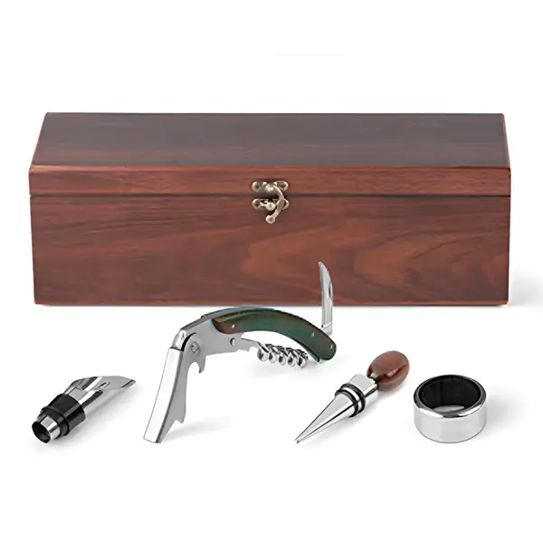 • Predstavljamo Vinski Set CLASSIC, esencijalni dodatak za svakog istinskog ljubitelja vina. Ovaj premijum set dolazi upakovan u elegantnu drvenu kutiju boje bordo, pružajući sve što je potrebno za savršeno iskustvo degustacije vina.