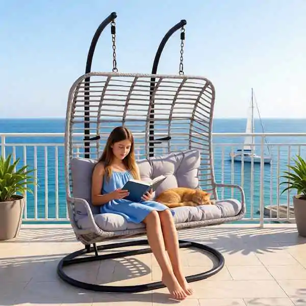 • Ovaj model viseće fotelje izrađen je sa posebnim akcentom na stabilnost i dugotrajnost. Čvrst i stabilan čelični okvir sa praškastim premazom obezbeđuje visoku otpornost na spoljašnje uticaje, vlagu i koroziju, što ga čini pogodnim za korišćenje tokom cele sezone. Konstrukcija je pažljivo dizajnirana kako bi obezbedila sigurnost, ravnotežu i dug vek trajanja, čak i pri svakodnevnoj upotrebi.