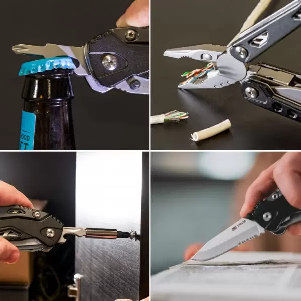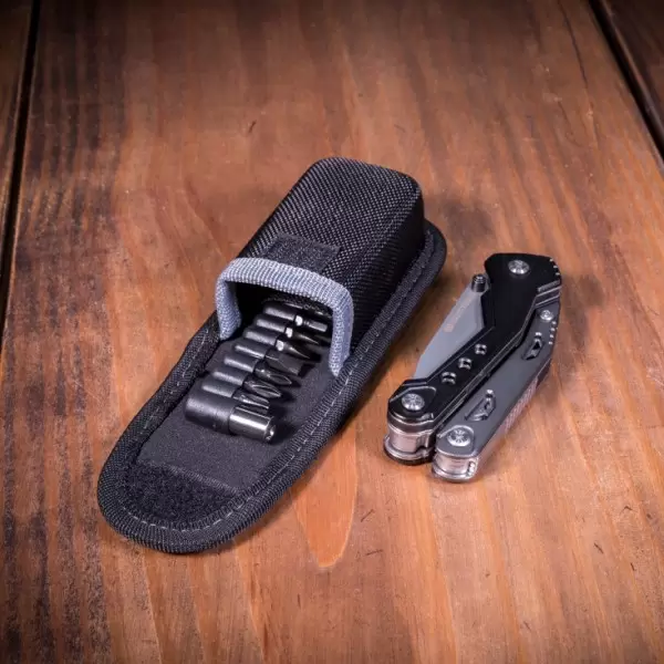 • Dodaci Kombinovana klešta, sečice, pljosnati šrafciger, turpija, krstasti šrafciger, mala testera, otvarač za flaše, sečivo sa nazubljenim delom, magnetni držač bitova i 9 bitova: #1, #2, i #3 Phillips, 1/8", 3/16" i 1/4" pljosnati, šestougaoni H3, H4, H5