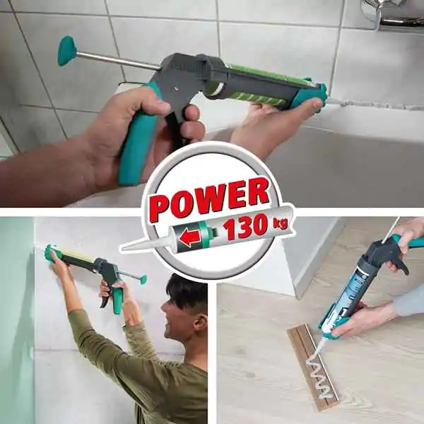 • Ovaj pištolj je idealan za širok spektar primena, uključujući zaptivanje fuga u kupatilima i kuhinjama, popravke pukotina, lepljenje različitih materijala i druge zadatke koji zahtevaju precizno nanošenje zaptivača ili lepkova. Njegov ergonomski dizajn i dodatne funkcije čine ga pogodnim za profesionalce i hobiste koji traže pouzdan i efikasan alat.