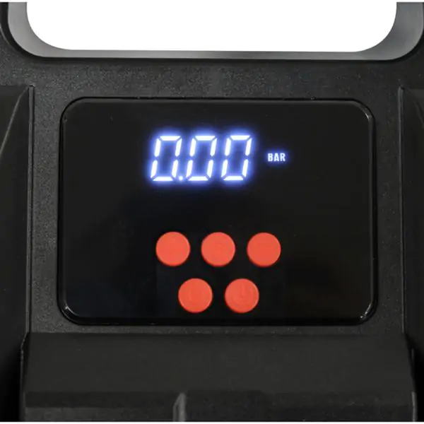 • Uređaj je opremljen elektronskim LCD displejem koji prikazuje trenutni pritisak u barima, čime se omogućava tačno podešavanje do maksimalnih 10 bara. LED svetlo obezbeđuje vidljivost čak i u mraku ili slabom osvetljenju.