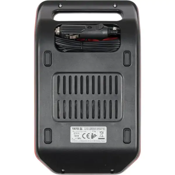 • Mobilni kompresor YATO predstavlja praktično i kompaktno rešenje za brzo i precizno napuštanje guma, lopti, dušeka, čamaca i bicikla direktno iz automobila. Napaja se preko auto-upaljača (12V DC), što ga čini idealnim za korišćenje na putu, u kampu ili u garaži.