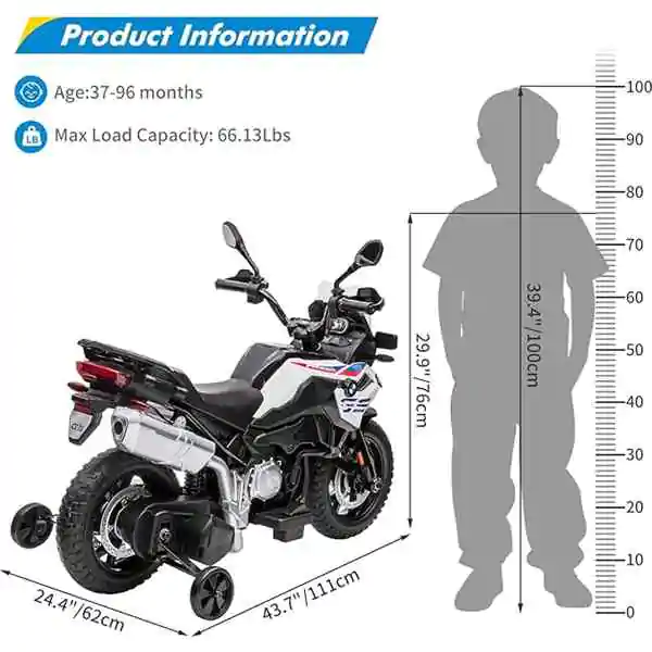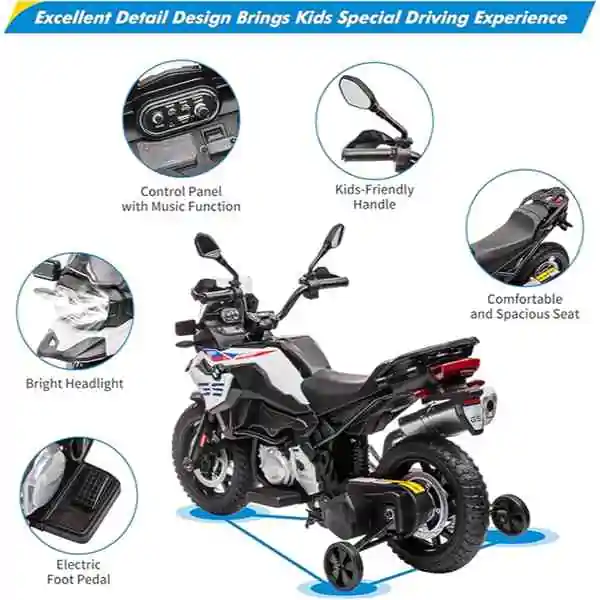 • BMW F850 GS motor za decu predstavlja licencirani dečiji elektromotor osmišljen da pruži bezbednu, stabilnu i uzbudljivu vožnju za mališane od tri do osam godina. Realističan dizajn, zvučni i svetlosni efekti, policijska sirena i funkcionalni koferi čine vožnju potpuno autentičnom i podstiču maštovitu igru. Stabilnost je unapređena točkovima za pomoć i niskim težištem, dok soft-start sistem obezbeđuje lagano i bezbedno ubrzanje. Dva snažna motora i opružno vešanje omogućavaju laganu vožnju po travi, betonu i ravnim baštenskim površinama, čineći ovaj model idealnim za dvorište ili park. Ugrađeni MP3 plejer i USB priključak obezbeđuju zabavnu vožnju uz omiljene pesme, dok je konstrukcija izrađena od sertifikovanih materijala bez štetnih supstanci. Ovo je odličan poklon za decu koja vole avanturu, brzinu i realističnu vožnju.