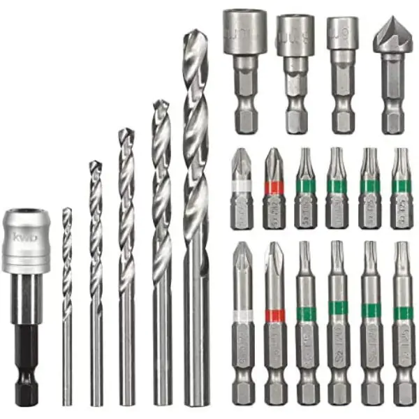 • Uključen je set bitova od 22 komada. Set se sastoji od 12 bitova, 3 držača bitova, 5 burgija, 1 brzi držač bitova i 1 upuštača. Kompatibilne su sa svim bušilicama sa nastavkom od 1/4 inča. Dolazi u praktičnoj kutiji za skladištenje