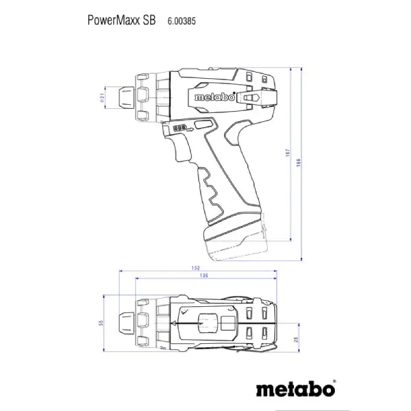 • Metabo PowerMaxx SB Basic je kompaktnа i laganа bežična udarna bušilica koja nudi savršenu kombinaciju snage i praktičnosti. Ova bušilica, sa svojim malim dimenzijama i niskom težinom, idealna je za raznovrsne poslove bušenja i zavrtanja, čineći je savršenim alatom za kućne majstore i profesionalce. Opremljena sa funkcijom udarca, omogućava jednostavno bušenje u zidu, dok integrisana radna svetlost osvetljava radnu površinu, olakšavajući rad i u uslovima slabijeg osvetljenja.