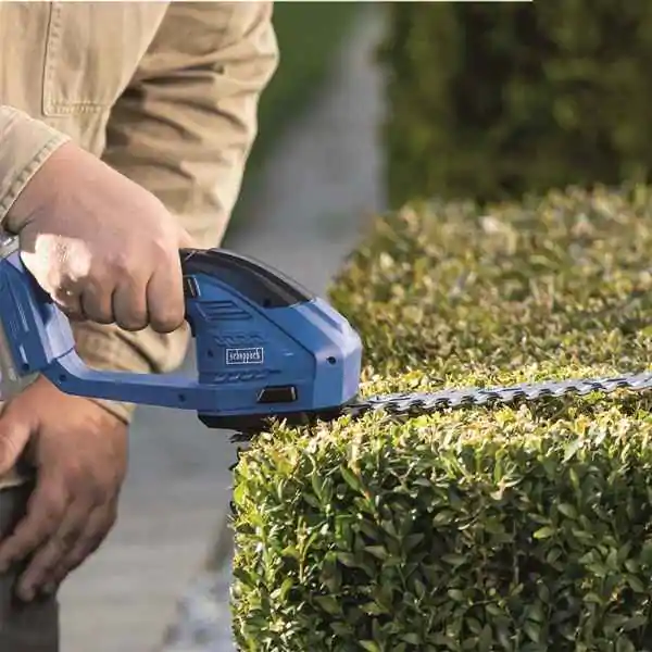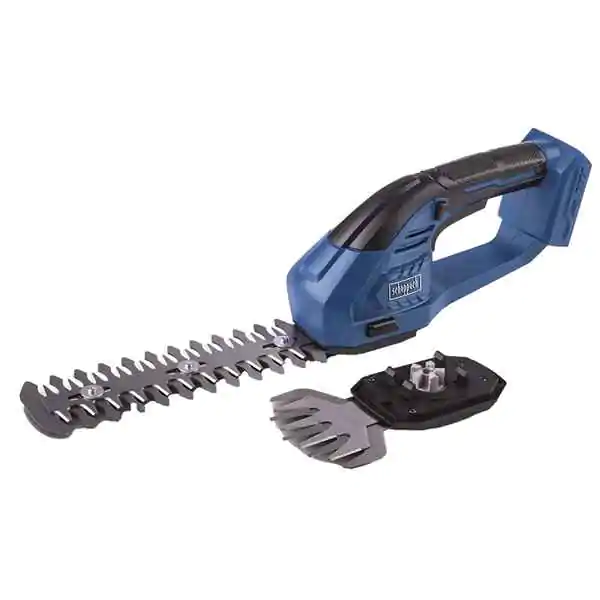 • Scheppach 2-u-1 akumulatorske makaze za travu i grmlje C-HTGS200-X savršene su za održavanje ivica travnjaka, podrezivanje malih živih ograda i oblikovanje žbunja. Zahvaljujući nožu za košenje trave širine 90 mm, lako možete postići savršeno uređene ivice travnjaka, dok nož za rezanje grmlja dužine 200 mm pruža idealno rešenje za negu živice i grmlja.