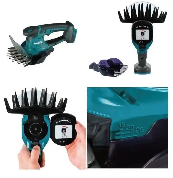 • DUM604ZX Makita akumulatorske makaze za travu i živu ogradu kombinuju izvanrednu snagu i praktičnost kako bi vašem vrtu ili dvorištu pružile besprekoran izgled. Njihova srebrno blistava površina noža ne samo da je estetski privlačna, već je i izuzetno otporna na habanje i koroziju, obezbeđujući dugotrajan radni vek alata.