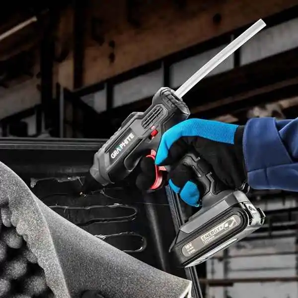 • GRAPHITE 58G040 je moderan i izuzetno praktičan aku pištolj za lepljenje, koji kombinuje snagu, preciznost i mobilnost. Namenjen je svima koji žele profesionalne rezultate u radionici, na gradilištu ili u kućnim uslovima. Zahvaljujući bežičnom radu na 18V Li-ion bateriju (Energy+ sistem), omogućava potpunu slobodu kretanja i rad bez ograničenja kablova.