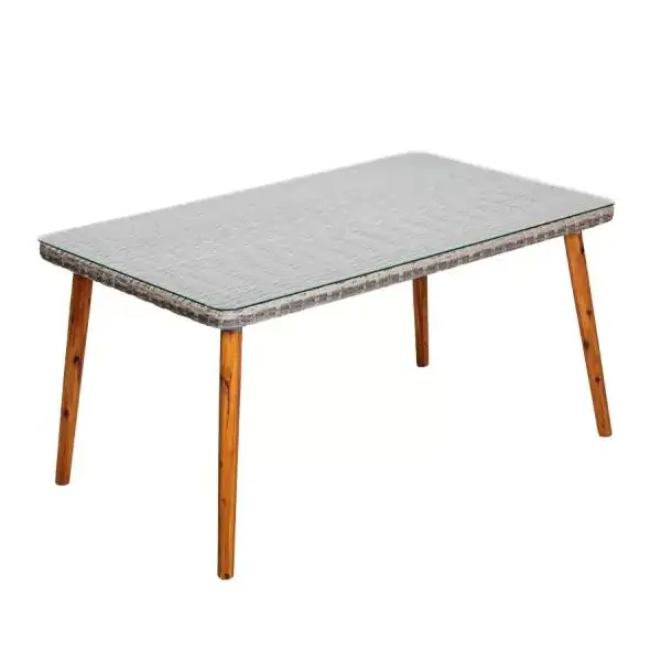 • Drvene nožice od akacije u prirodnoj boji dodaju toplinu i prirodan izgled, ističući se kao stilski detalj. Dimenzije stola 150 × 90 × 75 cm pružaju dovoljno prostora za udobno ručavanje sa porodicom ili prijateljima. Težina pakovanja od 16.25 kg olakšava transport i montažu.