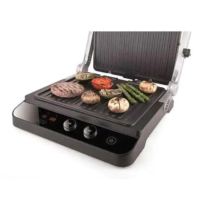 • Otvara se do 180º za upotrebu kao stoni roštilj.