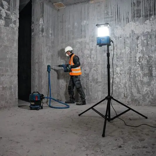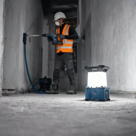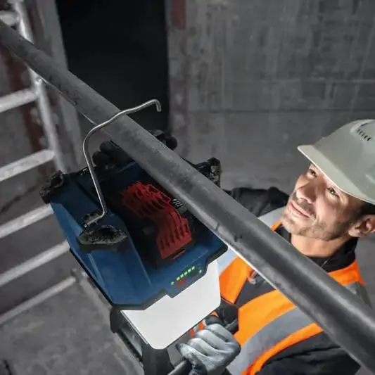• Bosch GLA 18VH-7500 Professional je hibridno svetlo za radne lokacije koje omogućava maksimalnu osvetljenost radnog prostora zahvaljujući svetlosnom fluksu od 7.500 lumena i podešavanju osvetljenosti sa režimima 180° i 360°. Svetlo može da se napaja električnom energijom ili Bosch Professional 18V akumulatorom, što omogućava fleksibilnu upotrebu na različitim radnim mestima. Integrisani USB-C® port omogućava brzo punjenje uređaja sa snagom do 15 W. Praktične opcije montaže uključuju robusnu metalnu kuku u bazi i navoj od 5/8” za stativ, što omogućava postavljanje svetla na optimalnu poziciju za ravnomernu distribuciju svetlosti. Intuitivna HMI funkcija sa LED indikatorima prikazuje nivo napunjenosti akumulatora, uključivanje i prigušivanje svetla, kao i izbor ugla osvetljenja, čime se obezbeđuje jednostavna kontrola i precizna regulacija svetlosnih uslova na radnoj lokaciji. Bosch GLA 18VH-7500 Professional je idealno rešenje za osvetljavanje zatvorenih prostora bez stalnog osvetljenja i za sve situacije kada je potrebna mobilnost i visok intenzitet svetla.