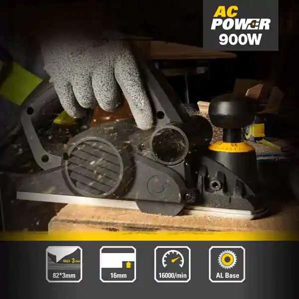 • Ovo električno rende 900W sa širinom obrade 82 mm predstavlja pouzdan izbor za stolarske radove, montažu vrata i obradu drveta u radionici ili na terenu.