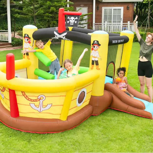 • Dečija igraonica na naduvavanje „Gusarski brod“ pretvara svako dvorište ili rođendansku proslavu u pravu morsku avanturu. Atraktivan dizajn u obliku gusarskog broda, kombinovan sa toboganom i prostorom za skakanje, pruža sate aktivne i bezbedne zabave za mališane. Ova naduvava igraonica idealna je za privatnu upotrebu, ali i za dečije igraonice i organizovane proslave.