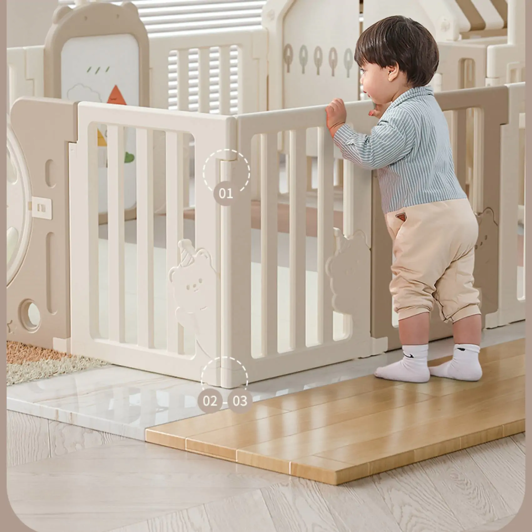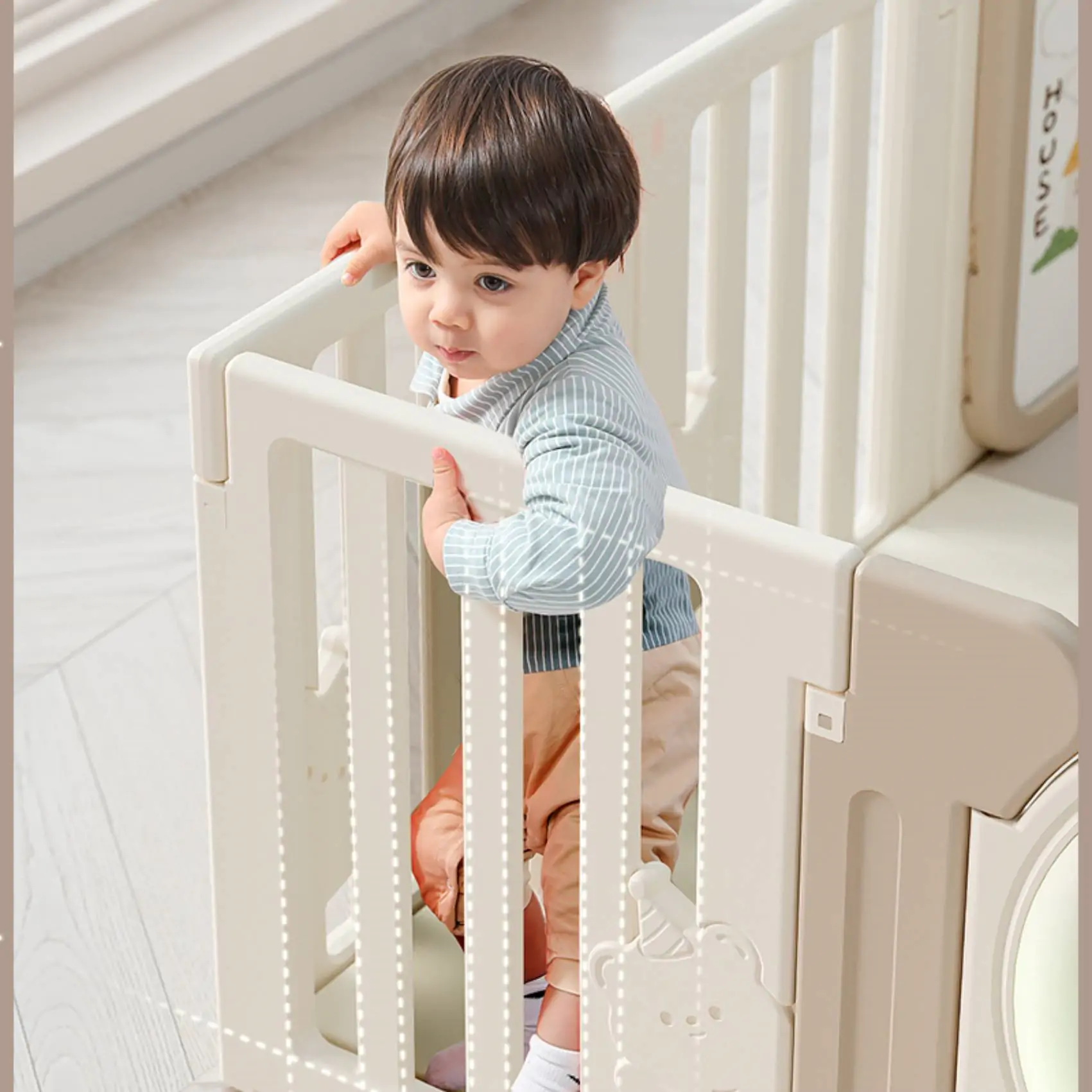 • Ogradica „Medin Mesec“ pruža savršeno mesto za igru i bezbednost vašeg deteta, kombinujući kreativni dizajn i funkcionalnost u jednom elegantnom setu. Ovaj multifunkcionalni kutak uključuje kućicu za maštovitu igru koja podstiče razvoj imaginacije, tobogan sa nosivošću do 35 kg za uzbudljiva spuštanja, ljuljašku nosivosti do 25 kg koja donosi radost i zabavu, koš za košarku za sportske aktivnosti, tablu za crtanje koja razvija umetničke veštine, kao i dekorativnu mesečevu svetlost koja stvara prijatno i toplo okruženje za igru.