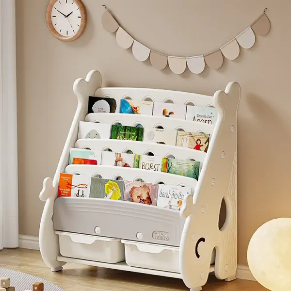 • Dečija polica za knjige i igračke je savršen spoj praktičnosti, bezbednosti i veselih boja, dizajnirana da unese red i organizaciju u svaku dečju sobu. Sa dimenzijama 77 × 69,4 × 41,7 cm, polica pruža dovoljno prostora za knjige, igračke, kreativni materijal i ostale predmete, a istovremeno je kompaktna i lako se uklapa u svaki prostor. Izrađena od visokokvalitetnog HDPE materijala koji se koristi u prehrambenoj industriji, garantuje dugotrajnost, sigurnost i pouzdanost, čineći je potpuno bezbednom za najmlađe. Atraktivan i moderan dizajn sa ravnim policama omogućava jednostavan pristup svim stvarima, dok sigurnosni elementi štite decu tokom korišćenja. Funkcionalnost ove police pomaže u razvijanju urednosti, organizacije i samostalnosti kod dece, a glatke površine olakšavaju čišćenje i održavanje. Idealna je za školsku opremu, igračke, knjige i crteže, čineći sobu istovremeno estetski lepom i praktičnom. Ova polica nije samo mesto za odlaganje stvari – ona podstiče kreativnost, organizaciju i samostalnost, pružajući mališanima siguran i inspirativan prostor za igru i učenje. Savršen izbor za roditelje koji žele funkcionalan, siguran i šaren kutak za svoje dete.
