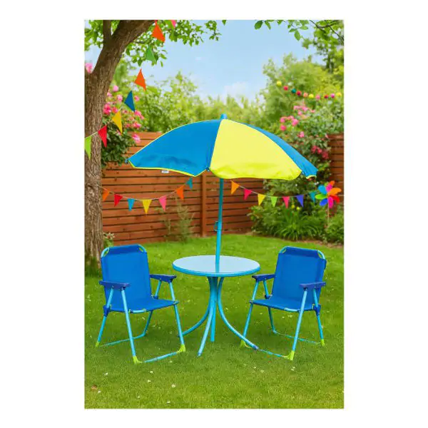 Dečija garnitura za dvorište predstavlja savršen izbor za igru i odmor na otvorenom. Set se sastoji od stola, dve stolice i praktičnog suncobrana, izrađenih od kvalitetnog PE materijala otpornog na UV zrake, što garantuje dugotrajnost i sigurnu upotrebu. Zahvaljujući laganoj konstrukciji, garnitura se lako prenosi i sklapa, pa je pogodna za piknike, izlete ili kampovanje. Tokom hladnijih meseci, komplet se jednostavno skladišti bez zauzimanja mnogo prostora. Ova funkcionalna dečija garnitura pruža mališanima sopstveni kutak za crtanje, igru, obroke i druženje na svežem vazduhu, podstičući kreativnost i socijalne veštine. Idealna je za dvorišta, terase i vrtove, a svojim šarenim i privlačnim dizajnom unosi vedrinu u svaku spoljašnju prostoriju.