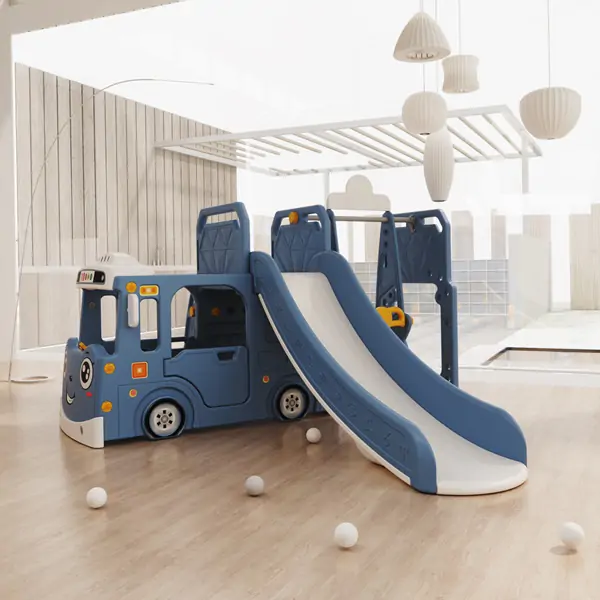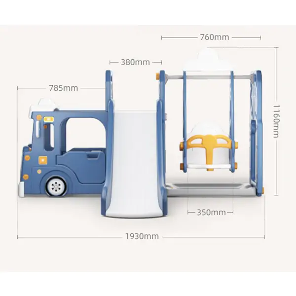 • Naziv proizvoda: Dečiji plavi vozić sa toboganom, ljuljaškom i ostavom za igračke
