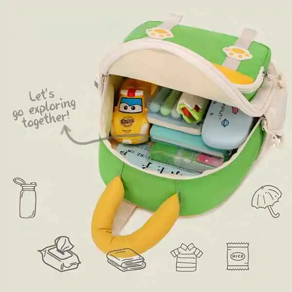 • Dečiji ranac Ruipai “Paw” dizajn u zelenoj boji idealan je izbor za mališane koji vole životinje i nežne pastelne tonove. Kombinacija zelene, žute i krem nijanse, uz simpatične šapice na prednjem delu, čini ga privlačnim i veselim dodatkom za vrtić ili šetnju. Izrađen je od kvalitetnog materijala otpornog na vlagu i habanje, pa se lako održava i dugo ostaje kao nov. Prostrani glavni džep omogućava da se spakuju sve neophodne stvari, dok prednji džep služi za sitnice koje treba da budu pri ruci, a bočni mrežasti džepovi savršeni su za flašicu vode. Udobnost je obezbeđena širokim, podstavljenim naramenicama i mekanom ručkom, pa je nošenje lagano i prijatno čak i za najmlađe. Dimenzije ranca 29 × 29 × 9 cm čine ga praktičnim za decu uzrasta od 2 do 6 godina, a njegova raznovrsnost ga čini odličnim izborom za vrtić, kraće izlete ili poklon koji će svakog mališana obradovati.