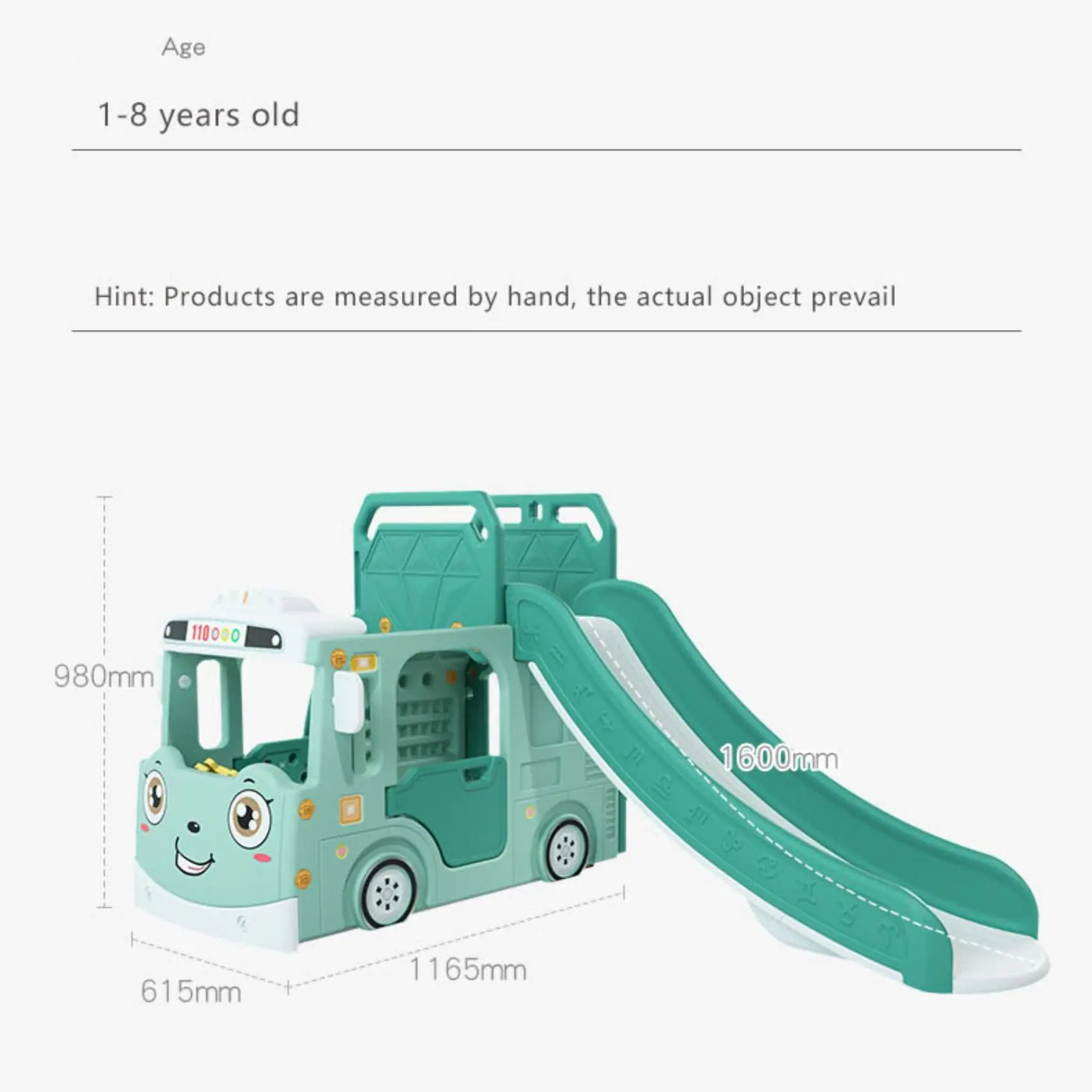 • Struktura igrališta je fleksibilna i jednostavna za sklapanje, što omogućava prilagođavanje ravnoj površini bilo u zatvorenom prostoru, poput dnevne ili dečje sobe, ili na otvorenom u dvorištu ili igraonici. Set uključuje tobogan, ljuljašku, klackalicu i vozić, sa nosivošću do 25 kg na ljuljašci i 40 kg na toboganu, pružajući sigurnu igru više mališana istovremeno i podstičući razvoj socijalnih veština, ravnoteže i koordinacije.