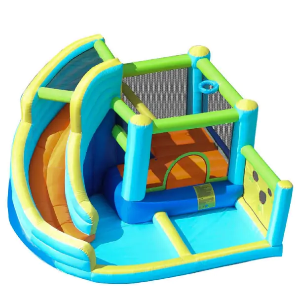 • Ovaj višenamenski naduvavajući vodeni park predstavlja vrhunsko rešenje za zabavu dece, idealno za profesionalnu upotrebu u igraonicama, zabavnim centrima, vrtićima, kao i za privatna dvorišta i terase. Zahvaljujući električnom ventilator-pumpi sa konstantnim protokom vazduha, igraonica se naduva za svega nekoliko minuta i održava stabilan pritisak tokom celog dana, garantujući sigurnost i pouzdanost čak i pri intenzivnom korišćenju. Dizajnirana za celogodišnju upotrebu, leti može funkcionisati kao vodeni park sa priključkom za crevo za prskanje, dok se zimi ili u zatvorenom prostoru koristi kao suva igraonica. Sa četiri zone zabave – tobogan, bazen, penjalica i košarkaška igra – pruža deci sate nepresušne zabave. Izrađena od najkvalitetnije Oxford tkanine (420D + 840D), igraonica je izuzetno otporna na habanje, vlagu i čestu upotrebu. Dimenzija 360×340×218 cm i nosivosti do 180 kg, idealna je za istovremeno uživanje četvoro dece. U kompletu se isporučuje sa ventilator-pumpom, kompletom za pričvršćivanje u zemlju, setom za popravku, torbom za skladištenje, mini košarkaškom loptom i crevo priključkom za vodu. Savršen izbor za celogodišnju zabavu.
