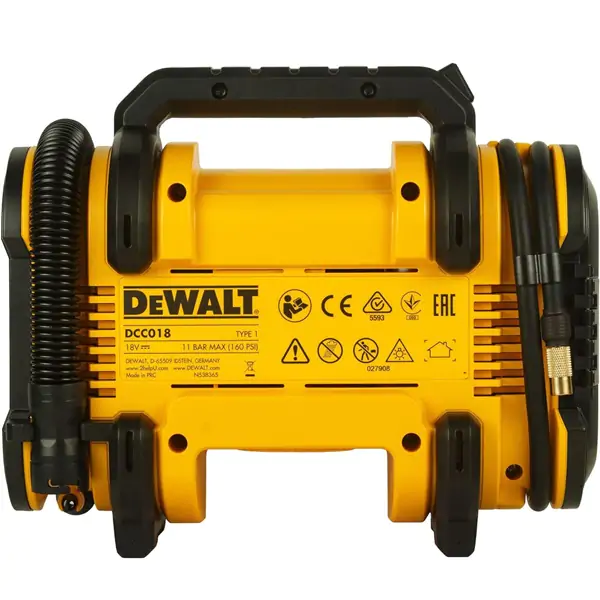 • DeWalt DCC018 je kompaktan i visokoperformantan 18V kompresor, deo XR 18V serije. Ovaj uređaj je izdržljiv, jednostavan za korišćenje i sposoban da se izbori sa zahtevnim zadacima zahvaljujući visokom pritisku i brzini isporuke vazduha od 14,7 L/min pri 2,4 BAR-a.